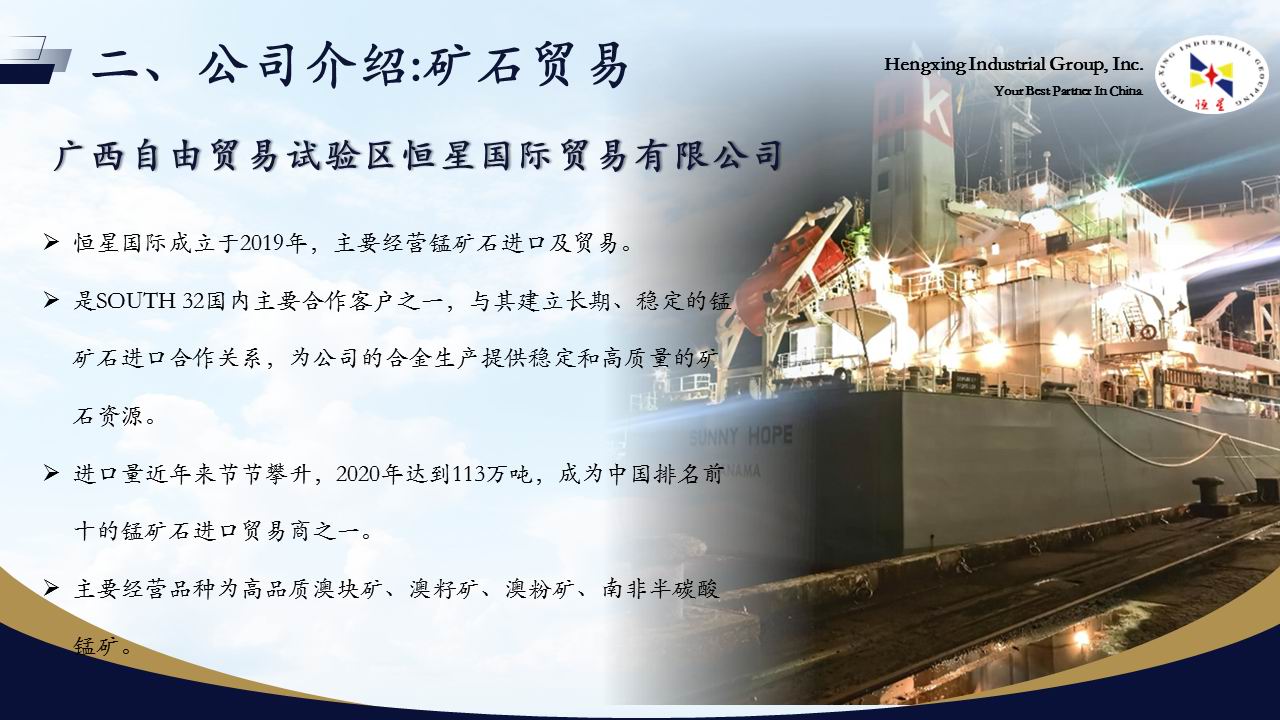 成为国内领先、国际知名的锰产品供应商,推动行业可持续发展